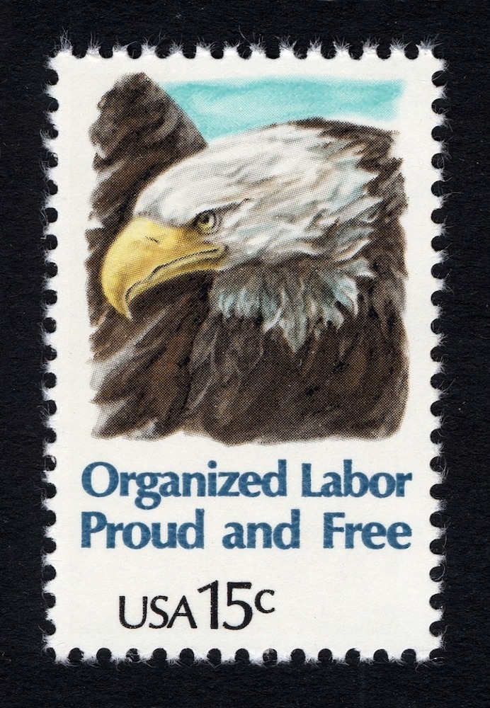 Previous Image Next Image 15c stamp Organized Labor Smithsonian The 15-cent Organized Labor commemorative stamp was issued in 1980. “The stamp honors the American labor movement, which is an integral part of the history of democracy and freedom in the United States,” according to the Smithsonian Institution. source: https://www.si.edu/object/15c-organized-labor-single%3Anpm_1985.0021.2493