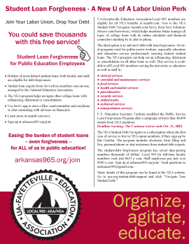 Previous Image Next Image 965 Savi flyer 021322 NEA-Savi student loan forgiveness program info sheet Designed by Kim Martin, text by Ben Pollock and Bret Schulte