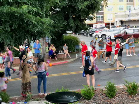 Previous Image Next Image All 5 of us by Christy Pollock 061822 The red-shirted Mike Pierce (from left), Ben Pollock, a friend of the union and Chad Kieffer then Trish Starks (black T-shirt) head down Dickson Street in Fayetteville’s 18th annual Pride Parade. Photo by Christy Pollock