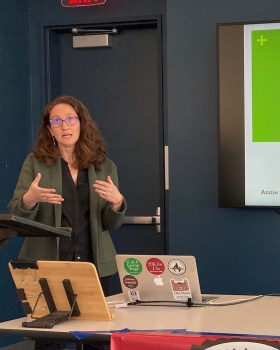 Previous Image Next Image Annie B Smith professor UA School of Law 040823 Annie B. Smith, a professor at the University of Arkansas School of Law, speaks at the April 8, 2023, NWA Labor Spring Teach-In at the Fayetteville Public Library. Mike Pierce photo