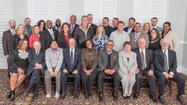 Previous Image Next Image big group shot 1000x 16-9 A group pose of Local 965 with Local 105 (Little Rock) of the Office and Professional Employees International Union (OPEIU) and a representative of the National Labor Relations Board. From the 965 archives.