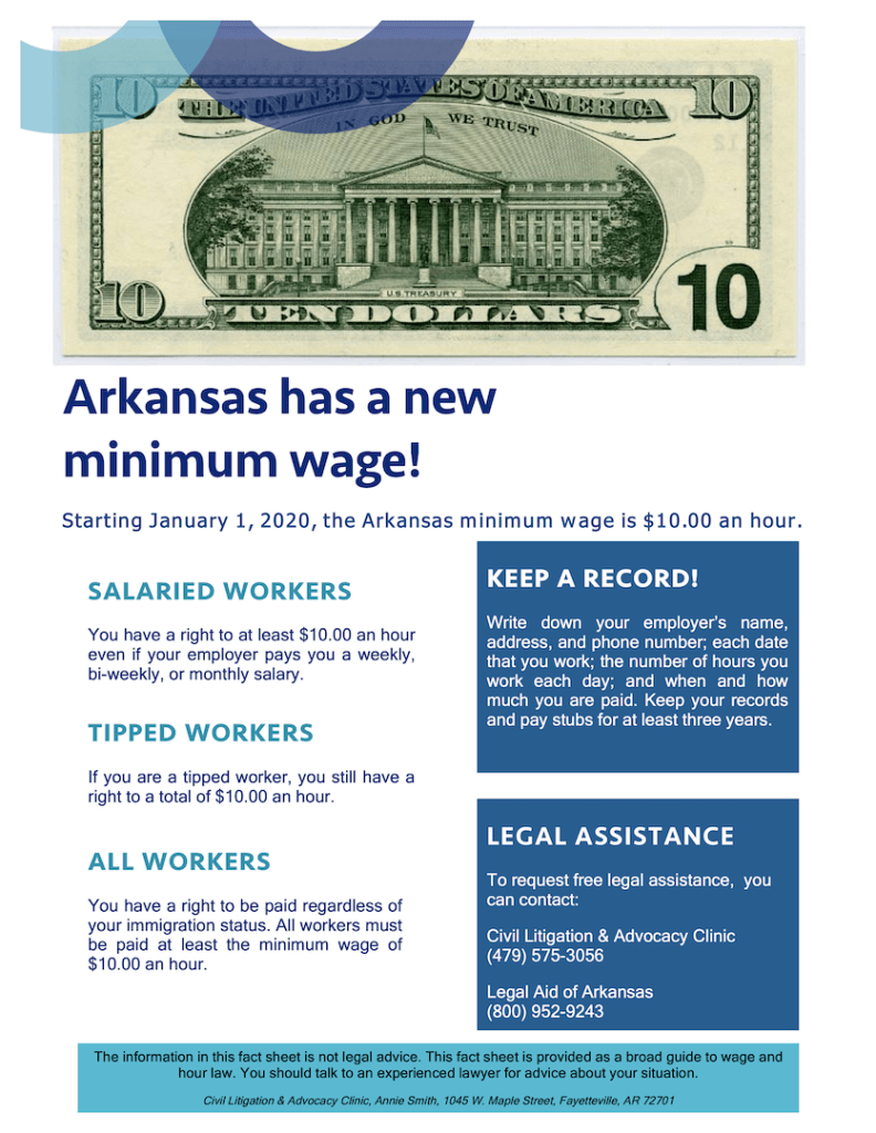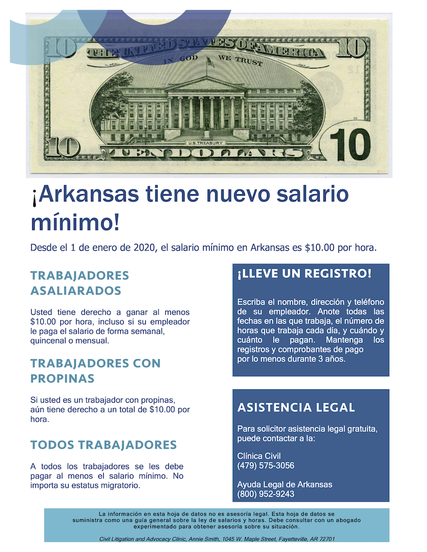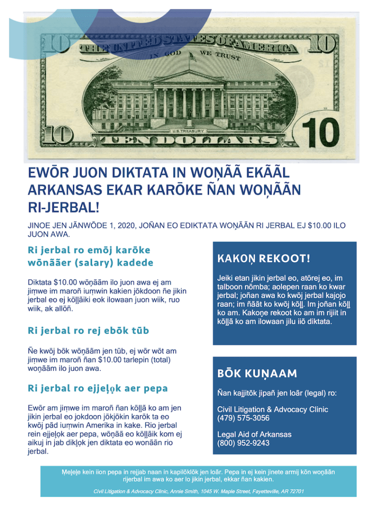 To help workers understand this change, the Civil Litigation and Advocacy Clinic of the University of Arkansas has produced fact sheets in three languages, English, Spanish and Marshallese (PDFs).