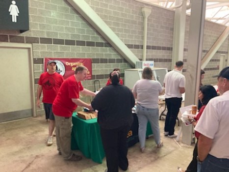 Previous Image Next Image Mike Chad staffer Renee staffers 965 At-Large Board Member Chad Kieffer answers questions of a U of A staff member as others stand by May 19 at the 2022 Staff Appreciation Picnic at Reynolds Razorback Stadium.