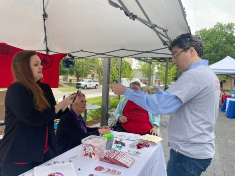 Previous Image Next Image Stephen Ritterbush at UA Staff Appreciation Picnic 051723 AEA UniServ liaison Renee Johnson talks with UA IT staff member Stephen Ritterbush at the May 17, 2023, University of Arkansas Staff Appreciation Picnic at the 1021 Food Hall. AEA photo