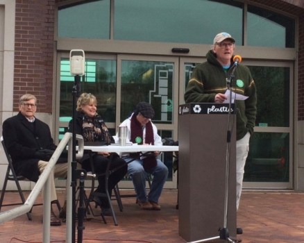 Previous Image Next Image Steve Boss by bschulte ACSME Local 965 member Steve Boss emcees the U of A Living Wage Rally on April 7, 2018, on the Fayetteville Town Center plaza. Photo Bret Schulte