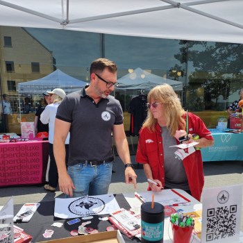 Previous Image Next Image Y Bret staffer square 051524 campuswide staff picnic Renee Johnson Local 965 board member Bret Schulte talks with a UA staff employee. Photo: Renee Johnson UA Staff Senate Staff Appreciation Picnic, May 15, 2024