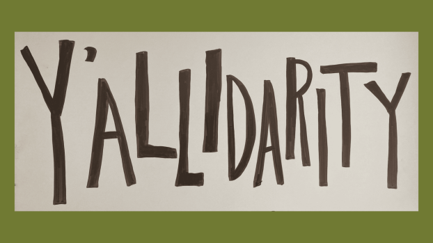 Previous Image Next Image yallidarity 16×9 cover Placard designed and carried March 15, 2024, by Amelia McGowan 1920×1080 HD green background, calligraphy by Amelia McGowan